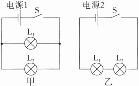 D.乙图中,灯 $L_{1}$ 和 $L_{2}$ 两端的电压之比 $U_{L1}:U_{L2}$ 为 $2:1$