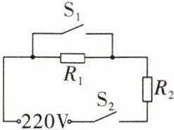 2. (2025 泸州泸县期末)如图所示,某家用电热水壶有“高温”“低温”两挡,已知定值电阻 $ R_{1} $ 与 $ R_{2} $ 阻值相等,“低温挡”正常工作时的功率为 $ 484 \, W $,则 $ R_{2} $ 的阻值为