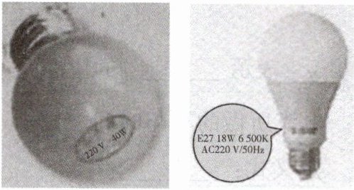 2. 如图所示为白炽灯和 LED 灯的铭牌,其中的 220 V 为其
