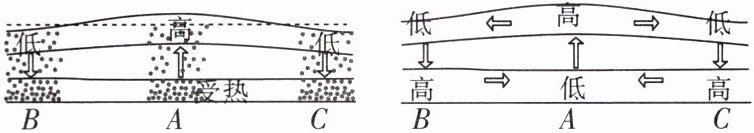 (选填“高”或“低”);B、C 两地近地面空气密度大