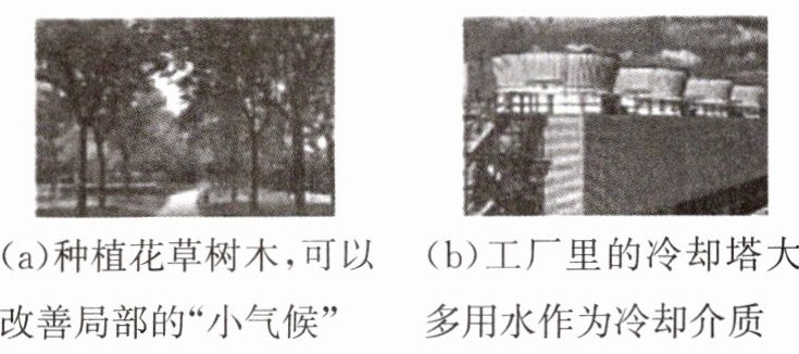 4. 如图所示,种植花草和树木,可以改善局部的“小气候”以及工厂里的冷却塔用水作为冷却介质,主要是利用水的