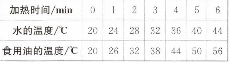 这个物理量。(6)已知水的比热容是$4.2×10^3J/(kg·℃),$根据表中数据通过计算可知,食用油的比热容是