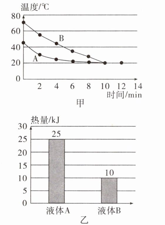 8.(2025广州天河区期末)在20℃恒温环境中,分别用仪器探究质量相同、初温不同的两种液体A和B的放热情况,得到的温度—时间图像如图甲,在0~10min放出的热量如图乙。(此过程A和B质量不变、物态不变)