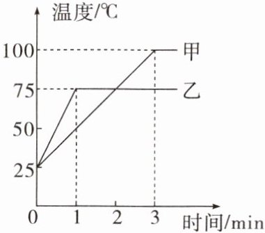 C.甲、乙温度升高25℃时吸收的热量之比是3:1