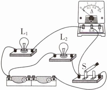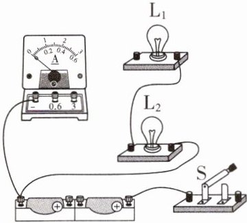 9.(2025遂宁期末)如图所示的电路,有两根导线尚未连接,请用笔画线代替导线补上。要求:①灯$L_1$和灯$L_2$并联;②电流表只测量灯$L_1$的电流。