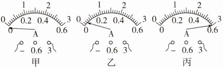 8. 如图所示为甲、乙、丙三位同学使用电流表时出现的问题,请分别写出造成这些现象的可能原因。