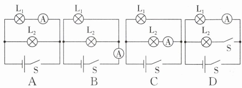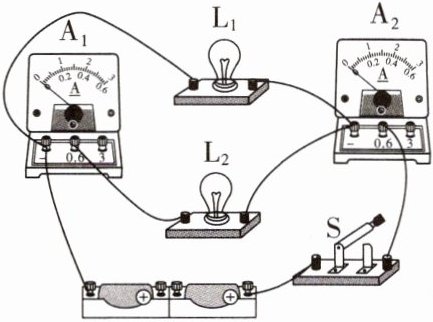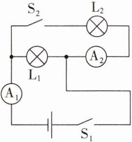 )A.只闭合$S_1$时$,L_2$发光$,L_1$不发光$,A_2$测通过$L_2$的电流