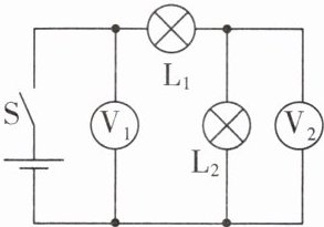 2. 将两个规格不同的小灯泡$L_1、$$L_2$并联接到电源上,发现灯泡$L_1$比灯泡$L_2$亮,用电压表分别测量灯泡$L_1、$$L_2$两端的电压$U_1、$$U_2,$会发现(