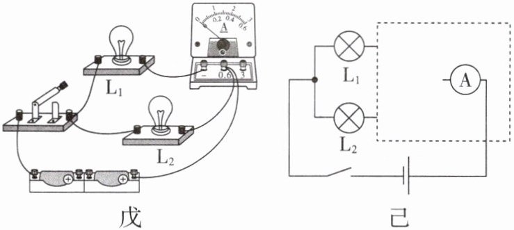 (7)小明和小红探究并联电路中的电流规律连接了如图戊的实物电路,请你根据戊图将己图的电路图补充完整。