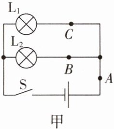 (选填“A"“B"或“C")处电流。(2)电流表测量C处电流的示数如图丙,则电流