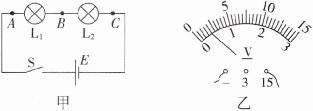 间重新测量,电压表的示数如图乙所示,电压
