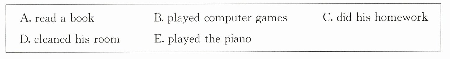 四、听录音,选择恰当的短语补全短文。请根据你听到的短文内容选择正确的选项,将其标号填在横线上。短文读两遍。(每小题2分,共10分)