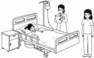 Sally is not feeling well. Her mum takes her to see a doctor. Now she is in the hospital. The doctor says to Sally's mum,"Don't worry. She has a fever. Take some medicine. Stay in bed for a day. And drink some hot water. She's going to be all right."