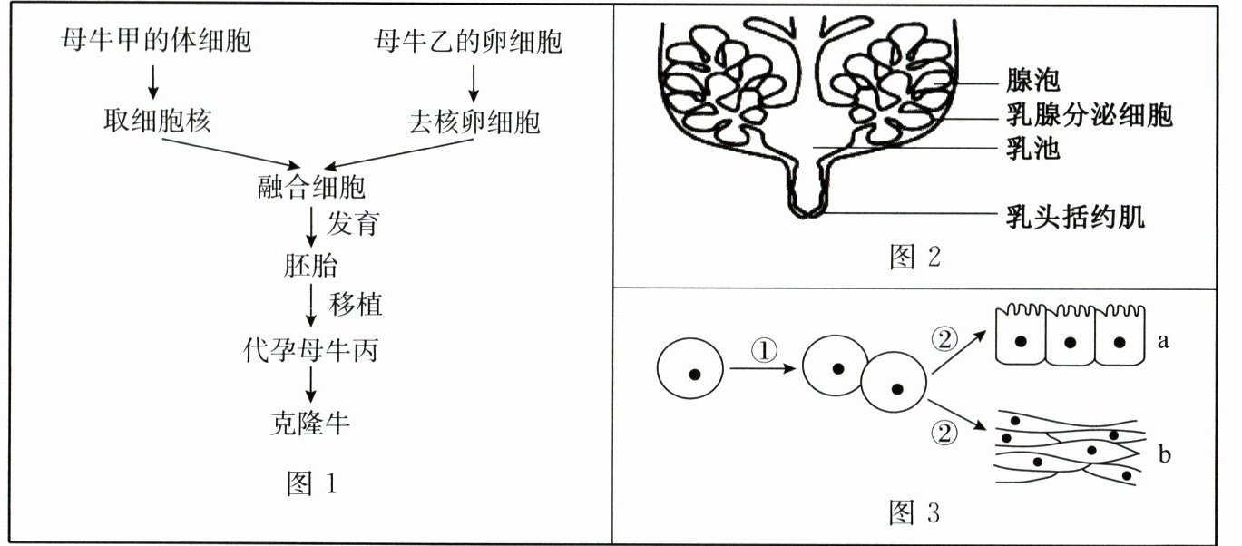 (1)克隆牛的形成过程如图1所示,克隆牛的产奶能力与母牛