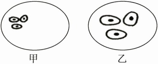 9. 某同学制作人口腔上皮细胞临时装片,并用显微镜观察到不同放大倍数的视野甲、乙(见下图),下列说法错误的是(