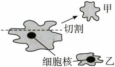 14. 变形虫是一种单细胞生物,若将一个变形虫切割成甲、乙两部分(见右图),则能继续发育并繁殖后代的是(