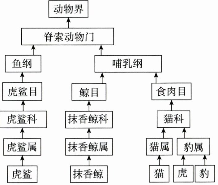 这个分类单位上与抹香鲸开始出现不同。(3)虎鲨属于鱼纲,身体呈流线型,用