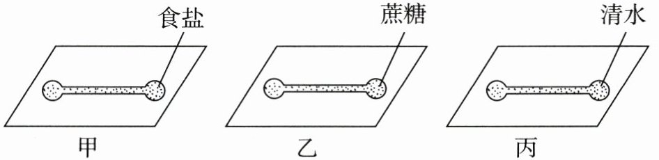 ②在甲、乙、丙的右侧培养液边缘各放一小粒食盐、蔗糖和一滴清水。