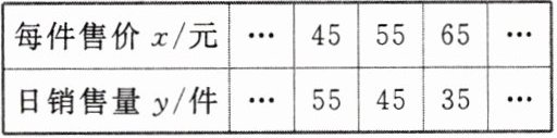 13. (2024 辽宁)某商场出售一种商品,经市场调查发现,日销售量 $y$(件)与每件售价 $x$(元)之间满足一次函数关系,部分数据如下表所示: