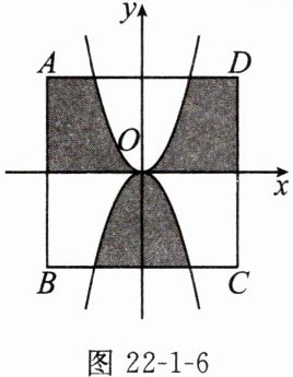 14. 如图 22-1-6,正方形 $ ABCD $ 的边长为 4,以正方形的中心为原点建立平面直角坐标系,作出函数 $ y = 2x^2 $ 与 $ y = -2x^2 $ 的图象,则阴影部分的面积是