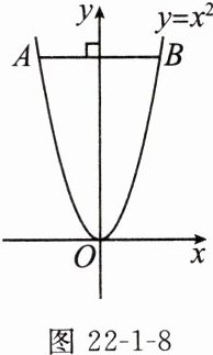 16. 如图 22-1-8,点 $ A $,$ B $ 均在二次函数 $ y = x^2 $ 的图象上,且线段 $ AB \perp y $ 轴。若 $ AB = 6 $,则点 $ A $,$ B $ 的坐标分别为