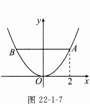 15. 已知二次函数 $ y = \frac{1}{2}x^2 $ 的图象如图 22-1-7 所示,线段 $ AB // x $ 轴,交图象于 $ A $,$ B $ 两点,且点 $ A $ 的横坐标为 2,则线段 $ AB $ 的长为