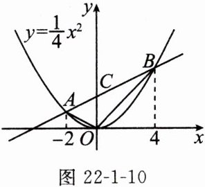 18. 核心素养 创新意识 如图 22-1-10,点 $ A $,$ B $ 在二次函数 $ y = \frac{1}{4}x^2 $ 的图象上。已知点 $ A $,$ B $ 的横坐标分别为 $ -2 $,$ 4 $,直线 $ AB $ 与 $ y $ 轴交于点 $ C $,连接 $ OA $,$ OB $。