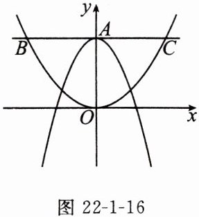14. 如图22-1-16,在平面直角坐标系中,抛物线 $ y = ax^2 + 3 $ 与 $ y $ 轴交于点 $ A $,过点 $ A $ 与 $ x $ 轴平行的直线交抛物线 $ y = \frac{1}{3}x^2 $ 于点 $ B $, $ C $,求线段 $ BC $ 的长度。