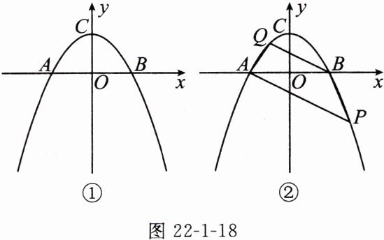 16. 如图22-1-18,抛物线 $ y = -x^2 + m $ 的顶点 $ C $ 在 $ y $ 轴的正半轴上,与 $ x $ 轴交于 $ A $, $ B $ 两点(点 $ A $ 在点 $ B $ 的左边), $ OA = OC $。