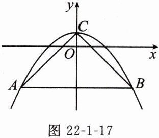 15. 如图22-1-17,抛物线 $ y = ax^2 + 1 $ 与过点 $ (0, -3) $ 且平行于 $ x $ 轴的直线相交于点 $ A $, $ B $,与 $ y $ 轴交于点 $ C $。若 $ \angle ACB $ 为直角,求 $ a $ 的值。