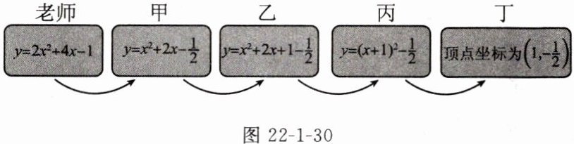 5. 老师设计了接力游戏,用合作的方式完成用配方法求二次函数图象的顶点坐标,规则是每名同学只能看到前面一名同学的步骤,并进行一步计算,再将结果传给下一名同学。过程如图22-1-30所示: