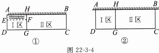 (1)方案一:如图 22 - 3 - 4①,利用围墙的全部长度,但要在Ⅰ区中留一个宽度 $AE = 1\mathrm{m}$ 的水池且需保证总种植面积为 $32\mathrm{m}^{2}$,试分别确定 $CG$,$DG$ 的长;