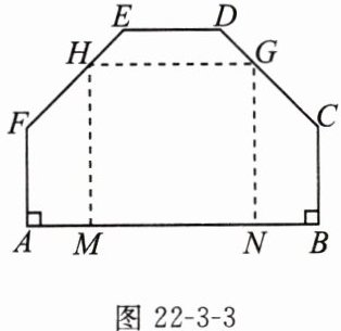 7. (2023 潍坊)工匠师傅准备从六边形的铁皮 $ABCDEF$ 中裁出一块矩形铁皮制作工件,如图 22 - 3 - 3 所示.经测量,$AB // DE$,$AB$ 与 $DE$ 之间的距离为 2 米,$AB = 3$ 米,$AF = BC = 1$ 米,$\angle A = \angle B = 90^{\circ}$,$\angle C = \angle F = 135^{\circ}$.$MH$,$HG$,$GN$ 是工匠师傅画出的裁剪虚线.当 $MH$ 的长度为多少时,矩形铁皮 $MNGH$ 的面积最大?最大面积是多少?