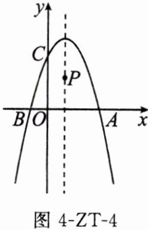 2. 如图 4-ZT-4,抛物线 $ y = ax^{2} + bx + 3 $ 交 x 轴于 $ A(3,0) $,$ B(-1,0) $ 两点,交 y 轴于点 C,动点 P 在抛物线的对称轴上。