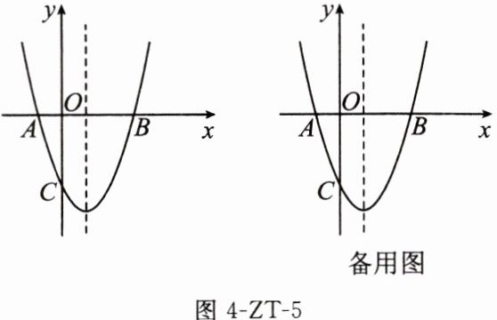 3. 如图 4-ZT-5,已知二次函数 $ y = ax^{2} + bx + c $ 的图象与 x 轴交于 $ A(-1,0) $,$ B(3,0) $ 两点,与 y 轴交于点 $ C(0,-3) $。