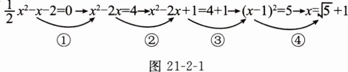 $ \frac{1}{2}x^{2}-x - 2 = 0 \xrightarrow{①} x^{2}-2x = 4 \xrightarrow{②} x^{2}-2x + 1 = 4 + 1 \xrightarrow{③} (x - 1)^{2}= 5 \xrightarrow{④} x = \sqrt{5} + 1 $