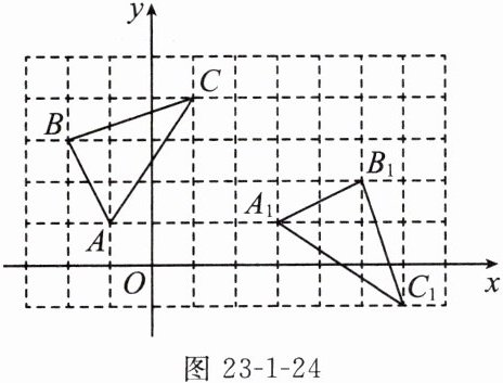 2. 如图 23-1-24,在平面直角坐标系中,网格中每个小正方形的边长均为 1,将△ABC 绕旋转中心顺时针旋转 90°,得到$△A_1B_1C_1,$则旋转中心的坐标是