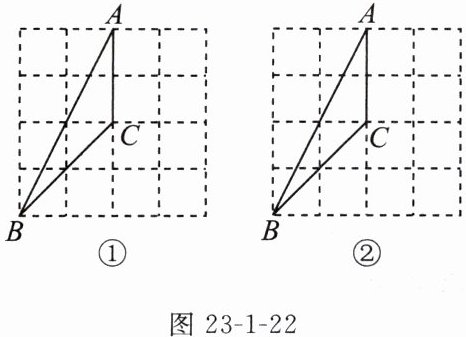 9. 如图 23-1-22,在 4×4 的方格纸中,△ABC 的三个顶点都在格点上。