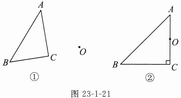 8. (1)如图 23-1-21①所示,已知△ABC 与点 O,画出△ABC 绕着点 O 按逆时针方向旋转 90°后的图形;
