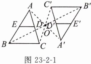 2. 如图 23 - 2 - 1,将 $\triangle ABC$ 以点 $O$ 为旋转中心,旋转 $180^{\circ}$ 后得到 $\triangle A'B'C'$。$ED$ 是 $\triangle ABC$ 的中位线,经旋转后为线段 $E'D'$。已知 $BC = 4$,则 $E'D'$ 等于(