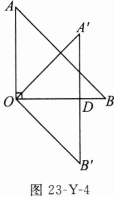 5. (2024陕西)如图23-Y-4,在 $ \triangle AOB $ 中, $ \angle AOB = 90^{\circ} $, $ OA = OB = 6 $.将 $ \triangle AOB $ 绕点 $ O $ 顺时针旋转 $ 45^{\circ} $,得到 $ \triangle A'OB' $, $ A'B' $ 与 $ OB $ 相交于点 $ D $,则 $ OD $ 的长为(