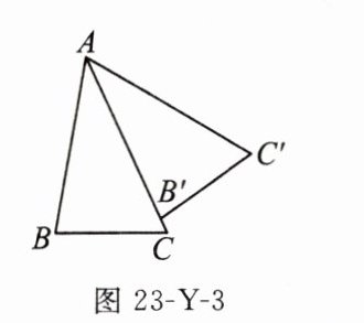 4. (2024无锡)如图23-Y-3,在 $ \triangle ABC $ 中, $ \angle B = 80^{\circ} $, $ \angle C = 65^{\circ} $,将 $ \triangle ABC $ 绕点 $ A $ 逆时针旋转,得到 $ \triangle AB'C' $.当 $ AB' $ 落在 $ AC $ 上时, $ \angle BAC' $ 的度数为(