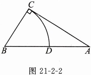 13. 核心素养 创新意识 古希腊数学家丢番图在《算术》中就提到了一元二次方程的问题,不过当时古希腊人还没有寻求到它的求根公式,只能用图解等方法来求解.在欧几里得的《几何原本》中,形如 $x^{2} + ax = b^{2}(a > 0,b > 0)$ 的方程的图解法是:如图 21-2-2,以 $\frac{a}{2}$ 和 $b$ 为两直角边长作 $Rt\triangle ABC$,再在斜边上截取 $BD = \frac{a}{2}$,则 $AD$ 的长就是所求方程的根.