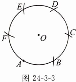4. 我们可以只用圆规将圆等分,例如:将圆六等分,如图 24-3-3,只需在 $ \odot O $ 上任取点 $ A $,从点 $ A $ 开始,以 $ \odot O $ 的半径为半径,在 $ \odot O $ 上依次截取点 $ B $,$ C $,$ D $,$ E $,$ F $,从而点 $ A $,$ B $,$ C $,$ D $,$ E $,$ F $ 把 $ \odot O $ 六等分. 下列可以只用圆规将圆等分的是(