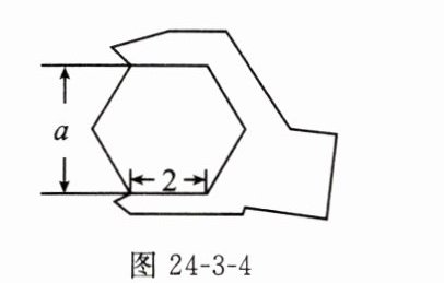 5. 如图 24-3-4,要拧开一个边长是 $ 2 \, cm $ 的六角形螺帽,扳手张开的开口 $ a $ 至少应是(