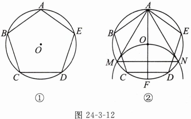 13. 如图 24-3-12①,正五边形 $ ABCDE $ 内接于 $ \odot O $,阅读以下作图过程,并回答问题.