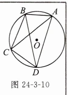| 克罗狄斯·托勒密是希腊数学家、天文学家、地理学家和占星家. 在数学方面,他还论证了四边形的特性,即有名的托勒密定理,托勒密定理的内容如下:圆的内接四边形的两组对边乘积的和等于两条对角线的乘积,即:如图 24-3-10,若四边形 $ ABCD $ 内接于 $ \odot O $,则有______. |