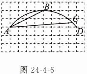 8. 如图 24 - 4 - 6 所示的网格中,每个小正方形的边长均为 $ 1 $,点 $ A $,$ B $,$ D $ 均在小正方形的顶点上,且点 $ B $,$ C $ 在 $ \overset{\frown}{AD} $ 上,$ \angle B A C = 22.5 ^ { \circ } $,则 $ \overset{\frown}{BC} $ 的长为