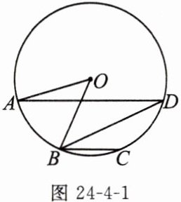 2. (2024 青岛) 如图 24 - 4 - 1,$ A $,$ B $,$ C $,$ D $ 是 $ \odot O $ 上的点,半径 $ OA = 3 $,$ \overset{\frown}{AB} = \overset{\frown}{CD} $,$ \angle DBC = 25 ^ { \circ } $,连接 $ AD $,则扇形 $ OAB $ 的面积为 (