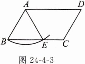 5. (2024 镇江) 如图 24 - 4 - 3,四边形 A B C D 为平行四边形,以点 A 为圆心, A B 长为半径画弧,交 B C 边于点 E ,连接 A E 。若$ A B = 1 , \angle D = 60 ^ { \circ } ,$则$ \overset{\frown}{BE} $的长 l =